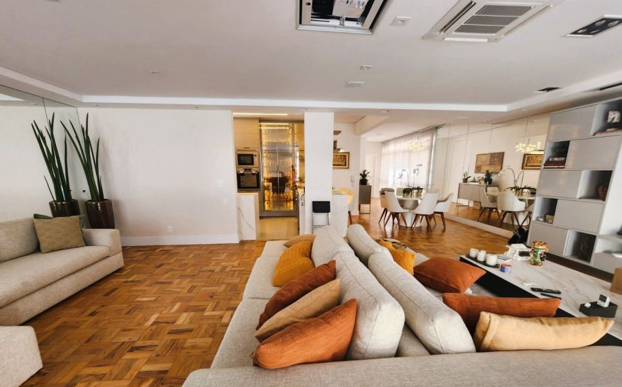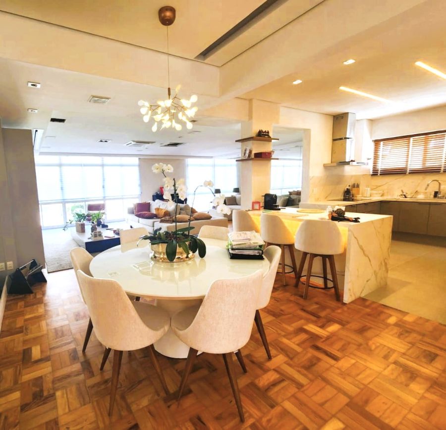 Este elegante apartamento de 220m² foi projetado para oferecer sofisticação, funcionalidade e conforto em cada detalhe: