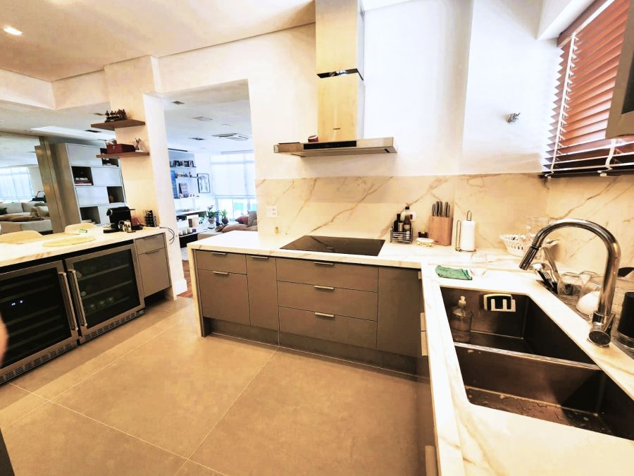 - Adega climatizada, cozinha espaçosa, dependência completa e área de serviço funcional;