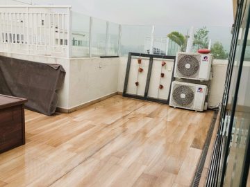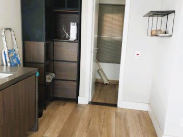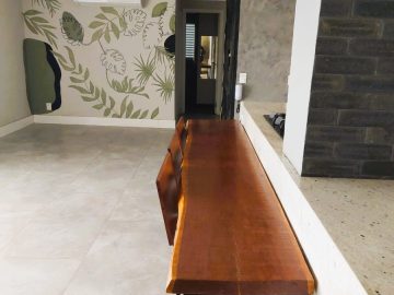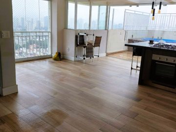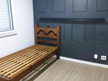 - Piso de madeira, trazendo sofisticação e conforto térmico;