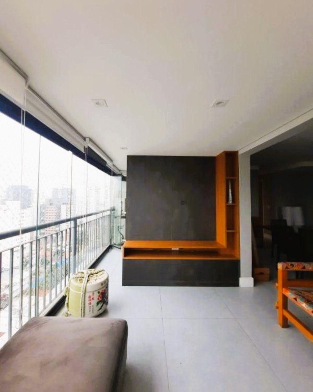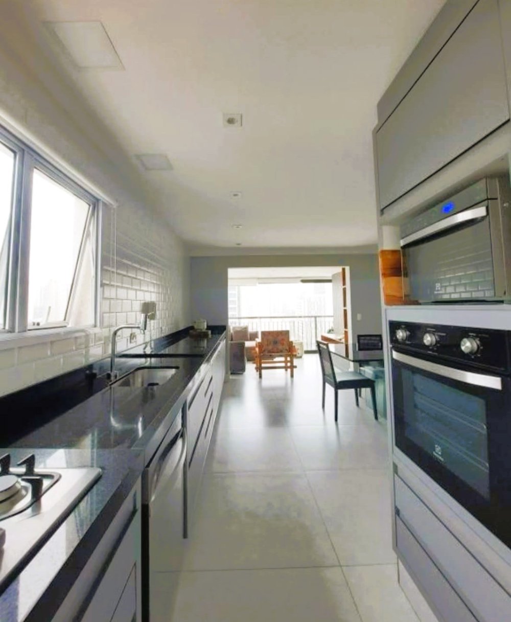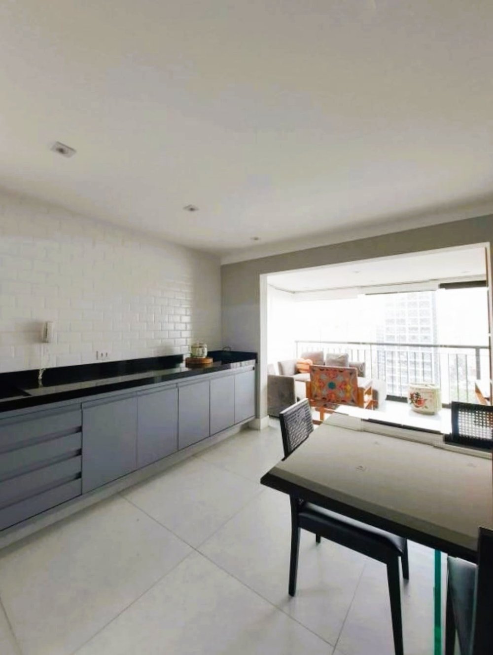 Cozinha americana integrada com a varanda.