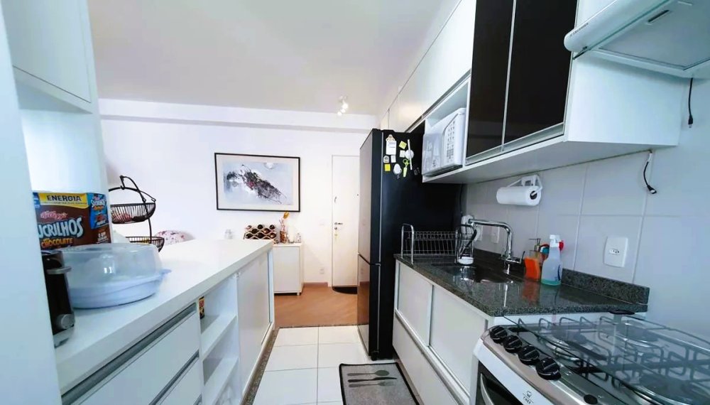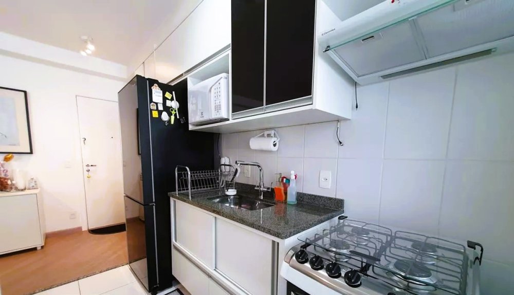 Cozinha com armários planejados, além de armários nos banheiros e dormitórios;