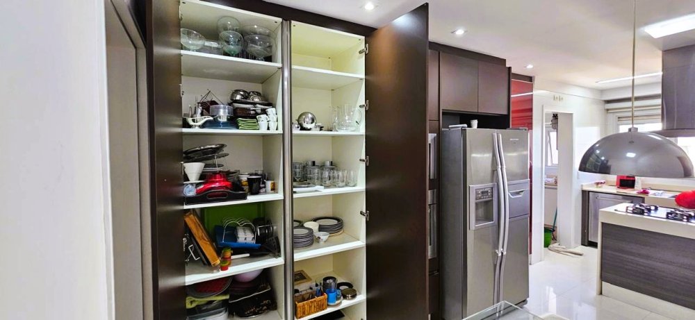 Cozinha equipada com armários planejados e embutidos;