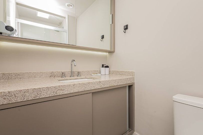 Além disso, um secador de cabelo está disponível para seu uso. Com um ambiente moderno e funcional, é o espaço perfeito para sua estadia em São Paulo!