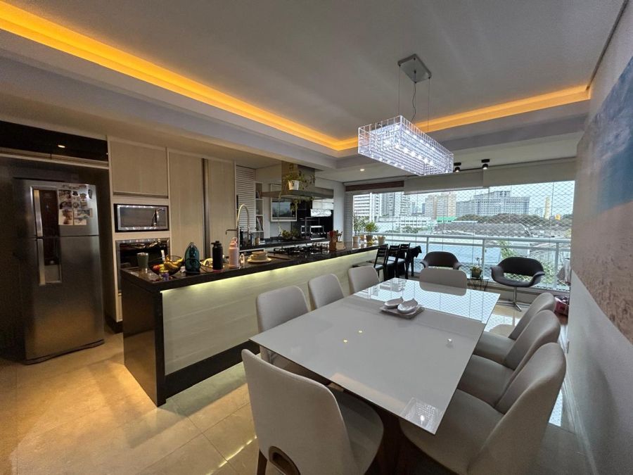 - Cozinha americana com cooktop de indução, forno e micro-ondas embutidos;